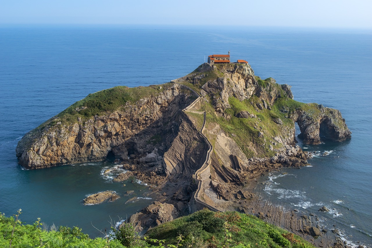 La ermita de San Juan de Gaztelugatxe es uno de los lugares más visitados en la costa vasca. Está ubicada en un islote frente al mar, cerca de la población de Bermeo. Para llegar a ella, se debe subir una empinada cuesta con más de 200 escalones.